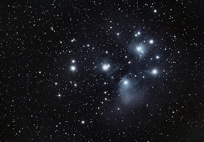 Si tratta dell'ammasso aperto più popolare: le Pleiadi, è l'oggetto più luminoso del catalogo di Messier, con un cielo limpido ad occhio nudo si distinguono 6/7 stelle (chiamate nell'antichità "le sette sorelle"), uno spettacolo nel cielo invernale nella costellazione del Toro.